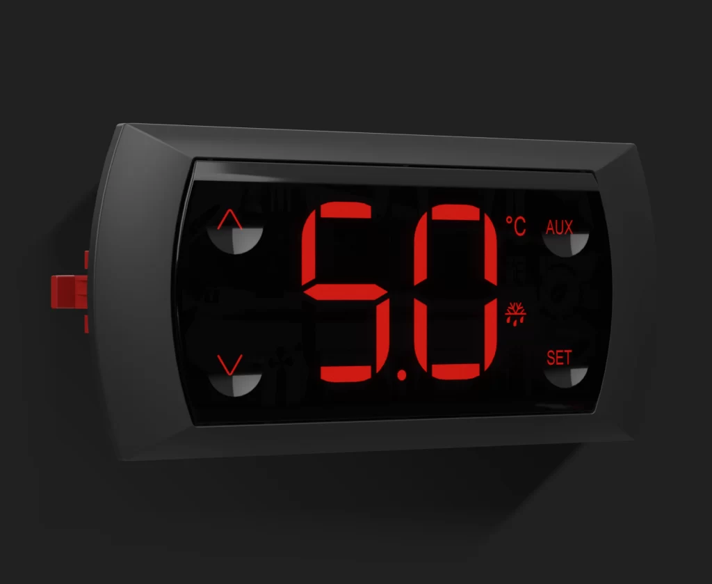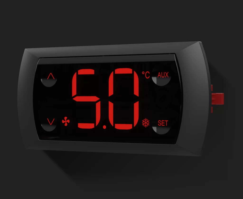 K116 Big Display is a temperature controller for refrigerated beverage displays or other applications that demand defrost control. Its main characteristics are the exclusive 30 mm display and the touch sensitive keys on the front panel. In addition to compressor control, it provides defrost management and control of fans and lighting.